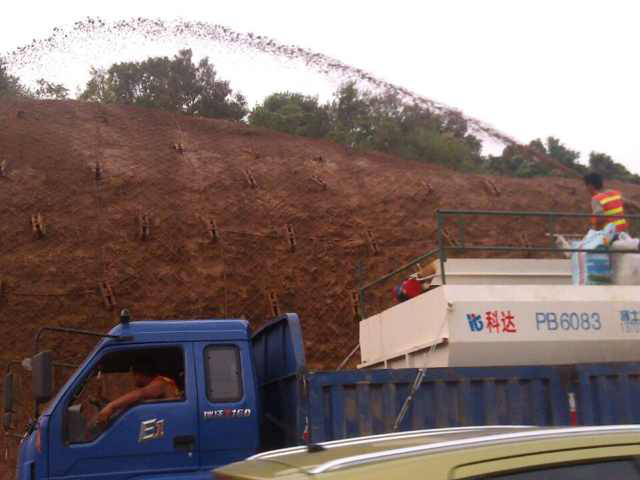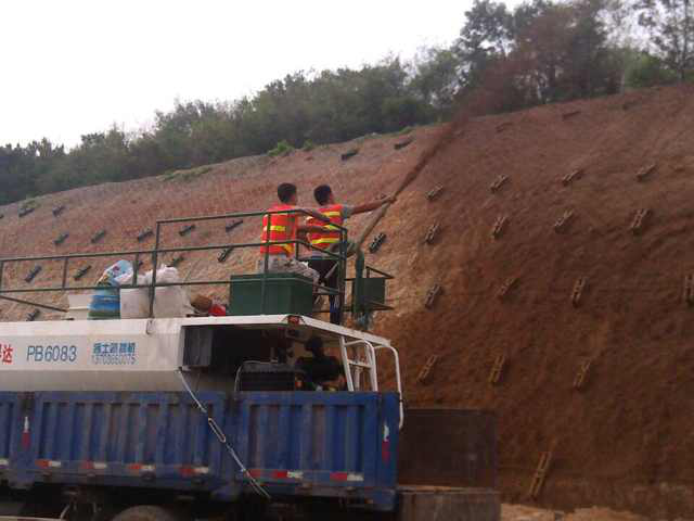 安徽六安金寨縣位于皖西邊陲是安徽省面積大、人口多的山區(qū)縣,金寨縣某地坡面裸露水土流失嚴(yán)重,為了能夠較好的控制水土流失,提高自然植被覆蓋率,金寨縣某地邊坡綠化采用客土噴播的方式施工,木質(zhì)纖維作為客土噴播重要的噴播基材之一,必然不可缺少,通過客戶介紹金寨縣噴播工程項(xiàng)目組采用我司專用噴播木質(zhì)纖維作為施工基材,進(jìn)行客土噴播邊坡綠化。