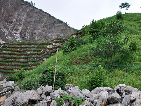 整修邊坡主要任務(wù)是清除邊坡上不穩(wěn)定的石塊。把凹凸不平的地方大致整平,以便讓種植材厚薄均勻,對于松散的巖石用水泥砂漿抹縫粘結(jié),若巖石邊坡本身不穩(wěn)定,應(yīng)該進(jìn)行加固處理,方法是采用預(yù)應(yīng)力錨桿錨索固定。