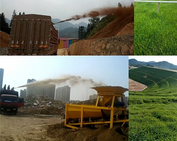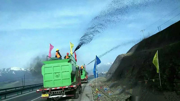 客土噴播機(jī)主要應(yīng)用在高速公(鐵)路邊坡植被保護(hù),河堤生物防護(hù)以及大規(guī)模綠地重建。