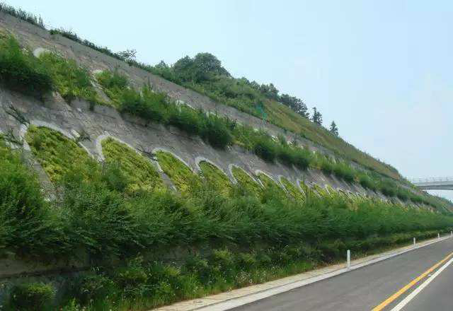 土工格室植草護坡:是指在展開并固定在坡面上的土工格室內(nèi)填充改良客土,然后在格室上掛三維植被網(wǎng),進行噴播施工的一種護坡技術。利用土 工格室為草坪生長提供穩(wěn)定、良好的生存環(huán)境。特點:采用土工格室植草,可使不毛之地的邊坡充分綠化,帶孔的格式還能增加坡面的排水性能。適合于坡度較緩的泥巖、灰?guī)r、砂巖等巖質路塹邊坡。 缺點:要求邊坡坡度較緩