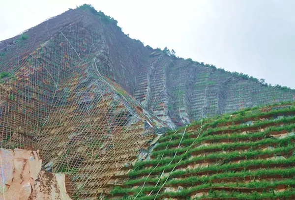 防護網(wǎng):可用塑料、鐵絲、鋼筋,其網(wǎng)度和選材應(yīng)根據(jù)邊坡的防護要求和特征而定,防護網(wǎng)的功能是與錨桿一起護坡,同時構(gòu)成基質(zhì)的“骨架”,增強基質(zhì)的整體性,防止其從坡面滑落。