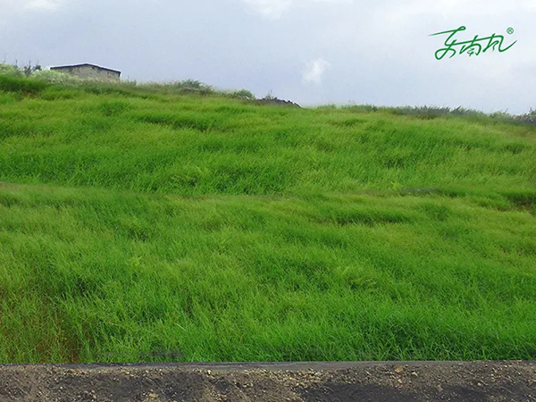 草、灌木混播在邊坡綠化防護(hù)中應(yīng)用,形成的邊坡植被有利于邊坡的穩(wěn)定和美化。與單一草被處理相比,能避免在秋冬季或旱季期間出現(xiàn)植被枯黃的現(xiàn)象,保持邊坡植被常綠景觀。由于豆科灌木本身具有根瘤固氮能力,根系發(fā)達(dá),能在坡面土壤肥力瘦瘠的情況下正常生長,加上其結(jié)出的種子散落坡面萌發(fā)生長,能在坡面形成強(qiáng)勢植被群落,避免了植被的退化。由于紫穗槐冬季落葉,前期長勢較弱,銀合歡則后期植株太高,它們均不適宜在公路邊坡綠化防護(hù)中應(yīng)用。通過比較表明,短期能達(dá)到復(fù)綠及防護(hù)目的的植物為木豆或山毛豆、羅頓豆配合草被混播,并且效果較顯著。另外草、灌木配合使用,能發(fā)揮草被快速覆蓋坡面、減少?zèng)_刷的作用,并為灌木的生長提供良好的溫濕環(huán)境,同時(shí)減少灌木種子的使用量。草種的選擇以狗牙根為主,在冷季施工可適當(dāng)添加黑麥草。